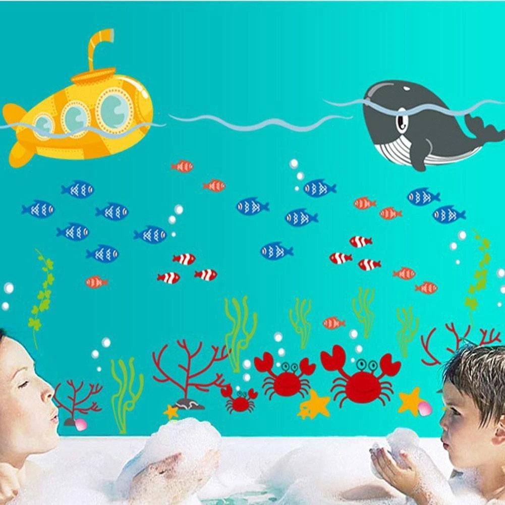 Cartoon Ocean Submarine Whales Wall Stick Bedroom Kindergarten Children Room Pml Child Bedroom Decor Children Comforterbedroom Play Aliexpress