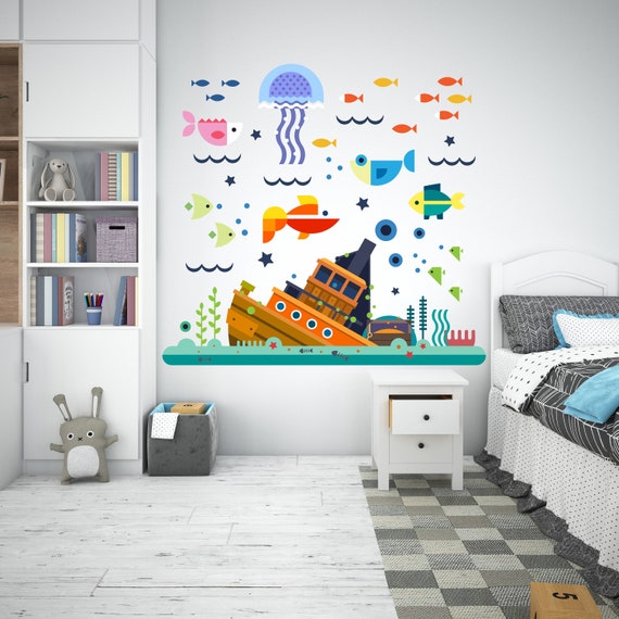 Sea World Underwater Aquarium Sea Kids Wall Art Decal Fish Etsy